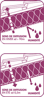 Pendant les mois d’été, sa valeur Sd faible favorise la circulation de la vapeur d’eau de l’extérieur vers l’intérieur, favorisant le séchage des parois et préservant ainsi l’intégrité de votre structure.