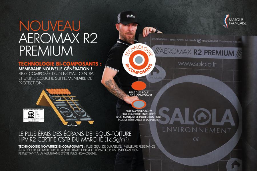 Doté d’une véritable membrane fonctionnelle en film polypropylène à perméance élevée, l’Aeromax R2 Premium est protégé par un voile non tissé bi-composants résistant à la déchirure et aux rayons UV. Il assure une étanchéité à l’eau exceptionnelle, garantissant la préservation de votre sous-toiture en cas de pénétration accidentelle d’eau ou de neige. En plus de cela, il est étanche à l’air, contribuant ainsi à optimiser les performances de l’isolant thermique en toiture.